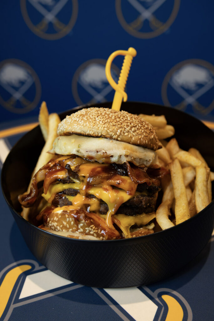 - Sabres Steakhouse Stack: 6 oz. beef filet, shoestring fries, raclette cheese, caramelized onion aioli, on a Sabres-branded brioche bun. Available at 100 level Coca-Cola stand.