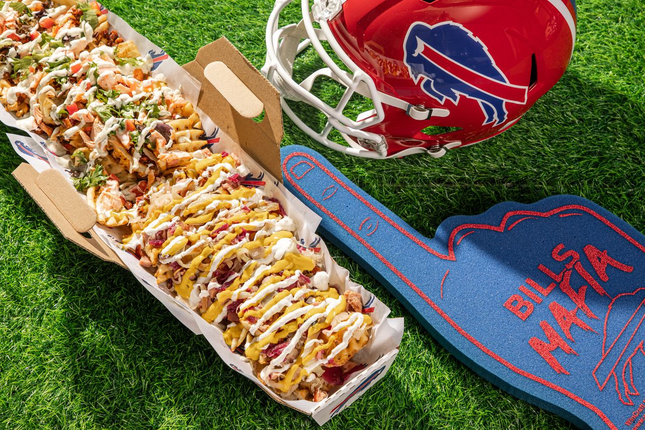 - Battle Boat: Waffle fries topped half with Buffalo-style ingredients and half with flavors from the visiting team’s region for each game (e.g., smoked kielbasa, crab cakes, shrimp po boy or lobster roll).