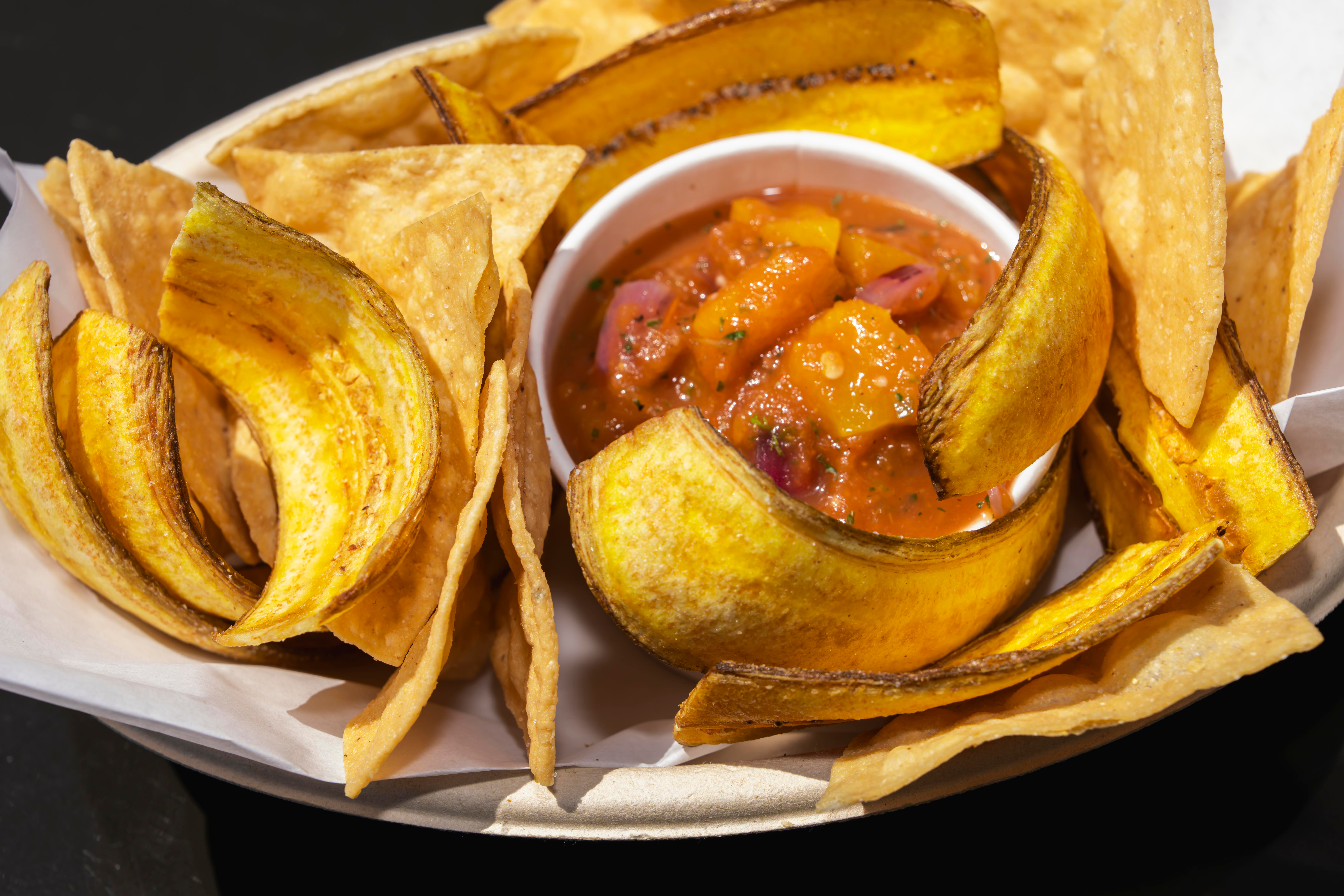 Available at Section 102 - Plantain Chips with Peach Salsa
